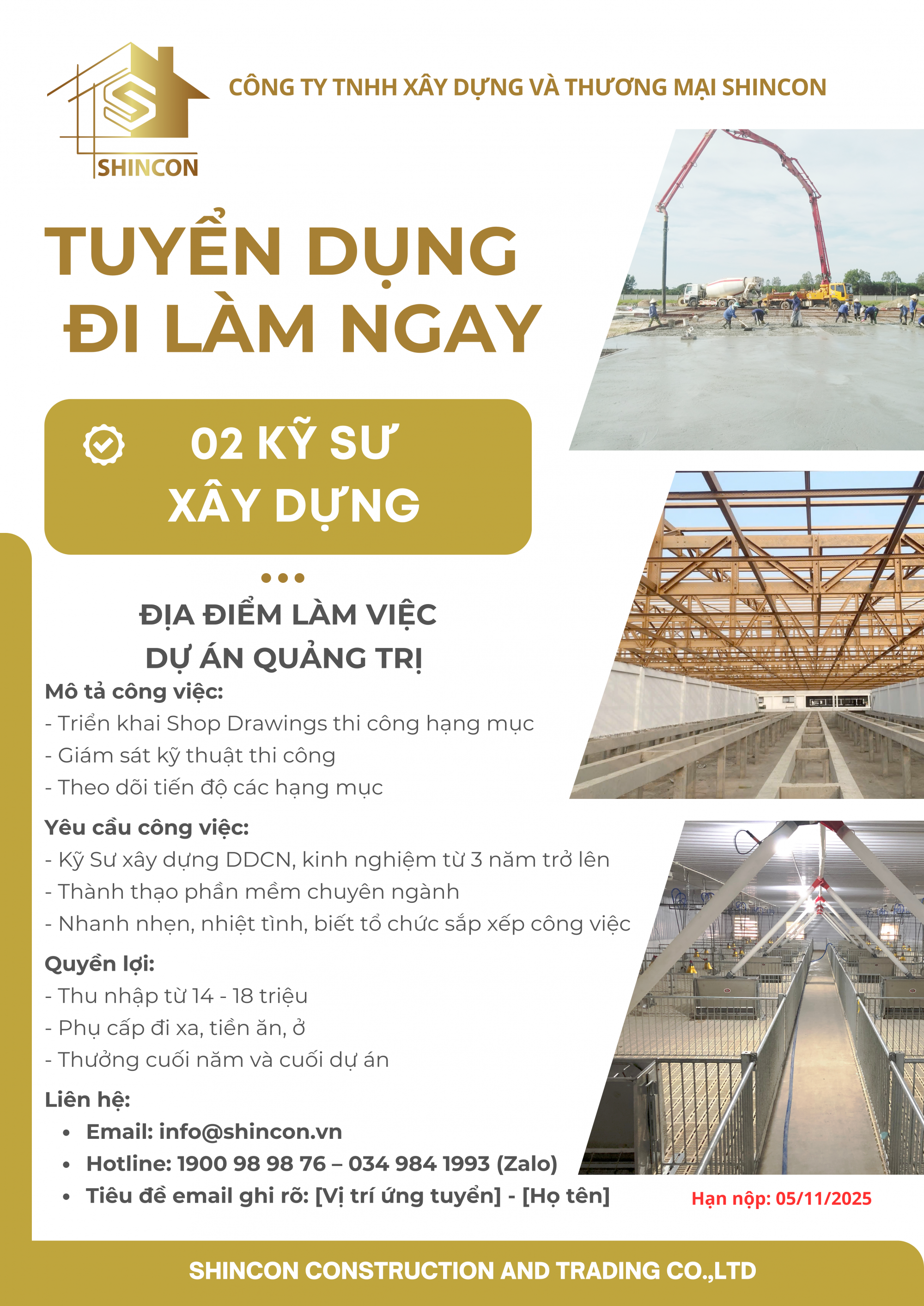 TUYỂN DỤNG KỸ SƯ XÂY DỰNG - DỰ ÁN QUẢNG TRỊ