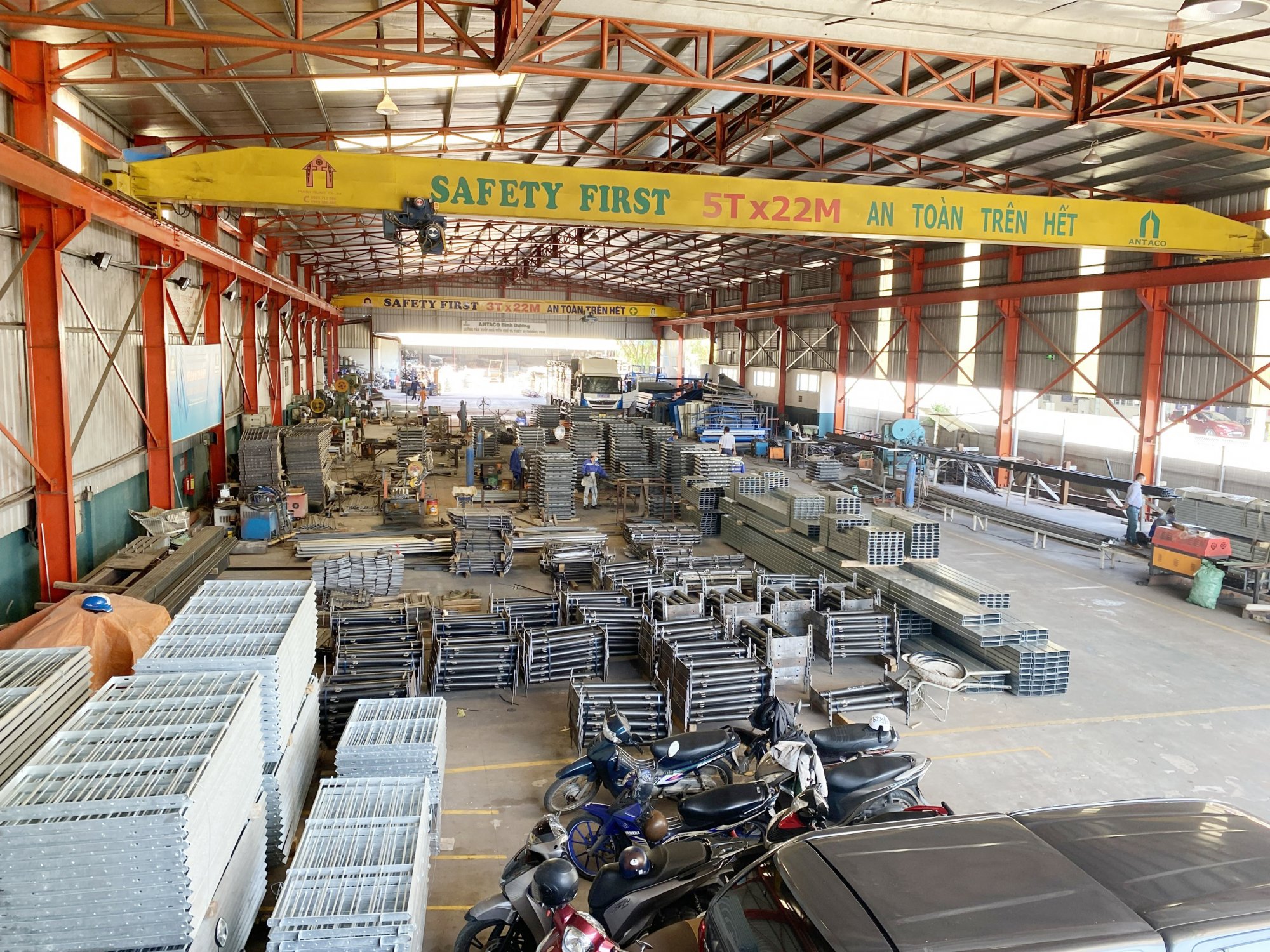 Xưởng cơ khí Phú Hoà - Công Ty Shincon chuyên sản xuất thiết bị lồng chuồng, khung kèo vật liệu nhẹ , khuôn đan các loại, grating các loại, cửa thép pano chống cháy, các cấu kiện thép sơn tĩnh điện hoặc nhúng kẽm, lắp đặt phòng sạch vách ngăn PU, rockwool, EPS.