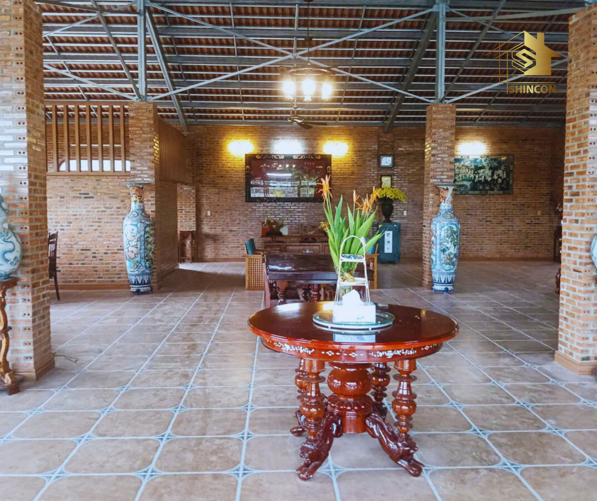 • Hành lang rộng, hiên thoáng, sân gạch đỏ – chuẩn phong vị miền Tây